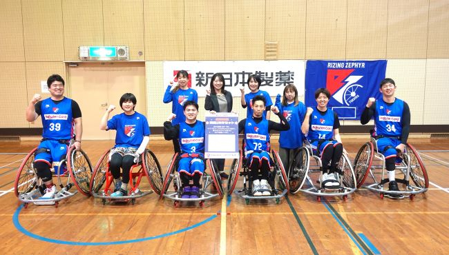 ライジングゼファーフクオカに属する車いすバスケットボールチーム「ライジングゼファーフクオカWheelchair」の皆さまは、ダイナミックな力強いプレーで人々に大きな勇気と感動を与えるだけでなく、車いすバスケットボールの普及活動や、障がいへの理解促進に積極的に取り組まれています。当社はその姿勢に深く共感し、2020年から継続して応援しています。
