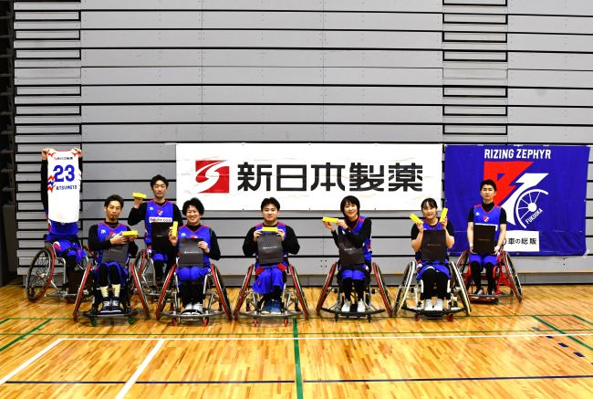 新日本製薬、ライジングゼファーフクオカWheelchairの選手・スタッフへ『パーフェクトワンフォーカス』商品1年分を進呈