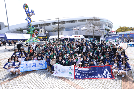 3月21日の「国際森林デー」にちなみ、J1リーグの社会連携プロジェクト(シャレン)の取り組み「FUKUOKA TAKE ACTION!」とのコラボ企画として、清掃イベントを実施。今回も、過去開催を上回る総勢244名が参加し、ベスト電器スタジアム周辺のごみ拾いを行いました。