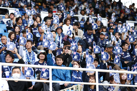 ピンクリボン運動の啓発を兼ね、アビスパ福岡選手入場時にピンク腕章の着用をいただきました。また、テーマを「Let’s think Pink, act NOW!今、想いをかたちに動き出そう」とし、乳がんは女性だけの問題ではなく社会全体で取り組むべき課題であるということを発信するため、10,000名を超えるスタジアム来場者の皆さまとファンフィンガーを掲げる、乳がん啓発イベントを実施しました。